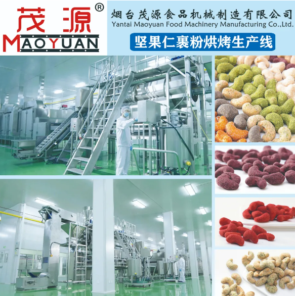 坚果仁裹粉烘烤生产线广泛应用于花生仁、腰果仁、巴旦木仁、榛子仁、夏果仁、碧根果仁、核桃仁等坚果籽类食品裹粉烘烤加工。设备集中控制自动化程度高,工艺适用性强,产品色泽好、口感佳、品质优。